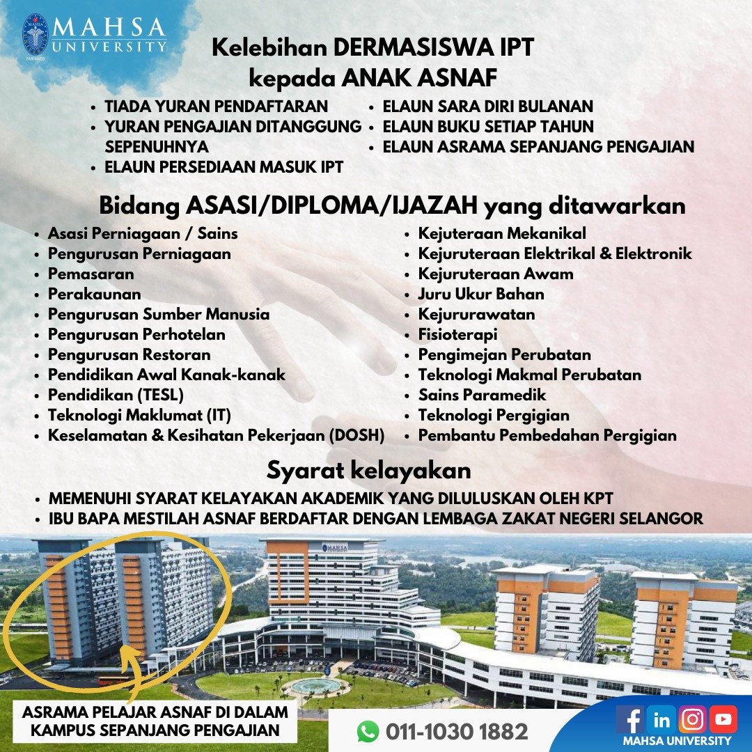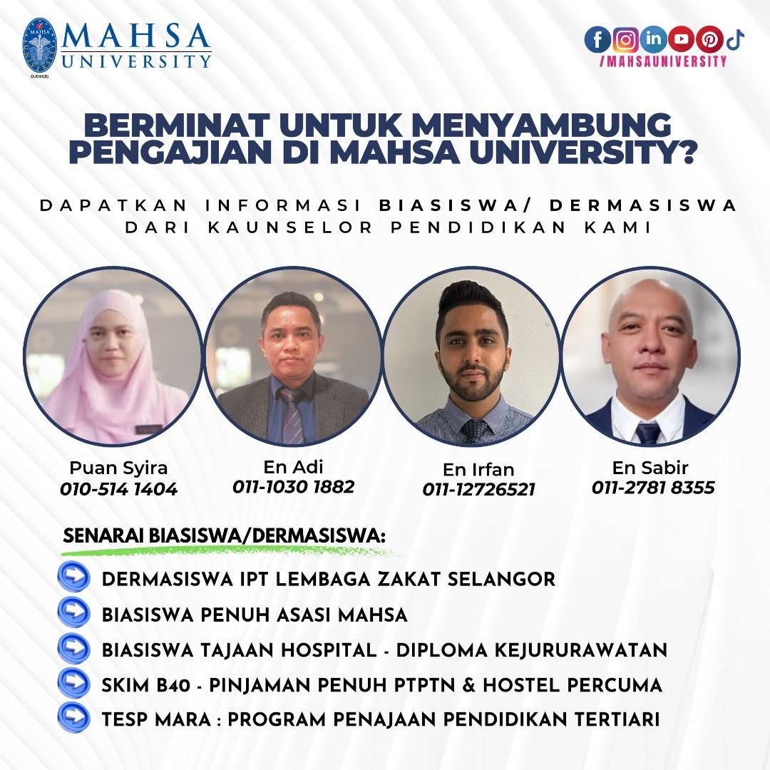 DI MAHSA UNIVERSITY, KAMI ADA PELBAGAI PROGRAM DARI SIJIL SEHINGGALAH PHD
